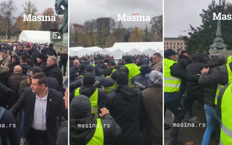 Sve je počelo kad su poslanici Narodnog pokreta Srbije Đorđe Stanković i Zeleno-levog fronta Bogdan Radovanović pokušali da sklone šator koji se nalazi na stepeništu ispred parlamenta.